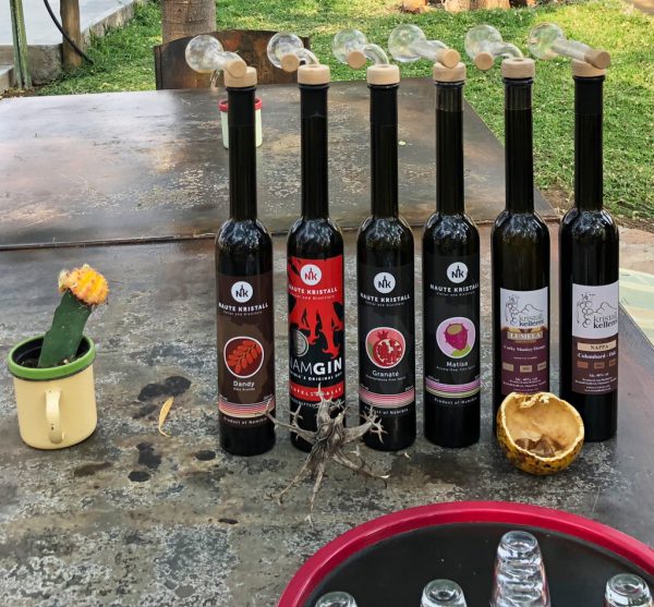 Wolfgang is determined to give Namibian visitors a taste of Namibia. The current offering at Erongo Mountain Winery includes 4 red wines, 4 white wines and four spirits from their distillery. The distilled spirits use local products, which in turn supports local growers and communities — a benefit that is important to Wolfgang.